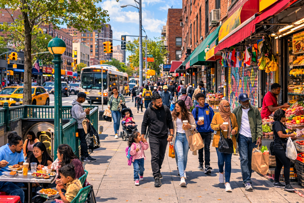 New York City sits across five boroughs Manhattan, Brooklyn, Queens, the Bronx, and Staten Island. With 8.3 million residents packed into 302 square miles, it is the most densely populated major city in America. Immigrants make up nearly 37% of the city’s population. Over 200 languages are spoken here. Ethnic enclaves like Jackson Heights (Queens), Flushing (Queens), Sunset Park (Brooklyn), and the South Bronx give newcomers built in community support, familiar food, and native-language services from day one.